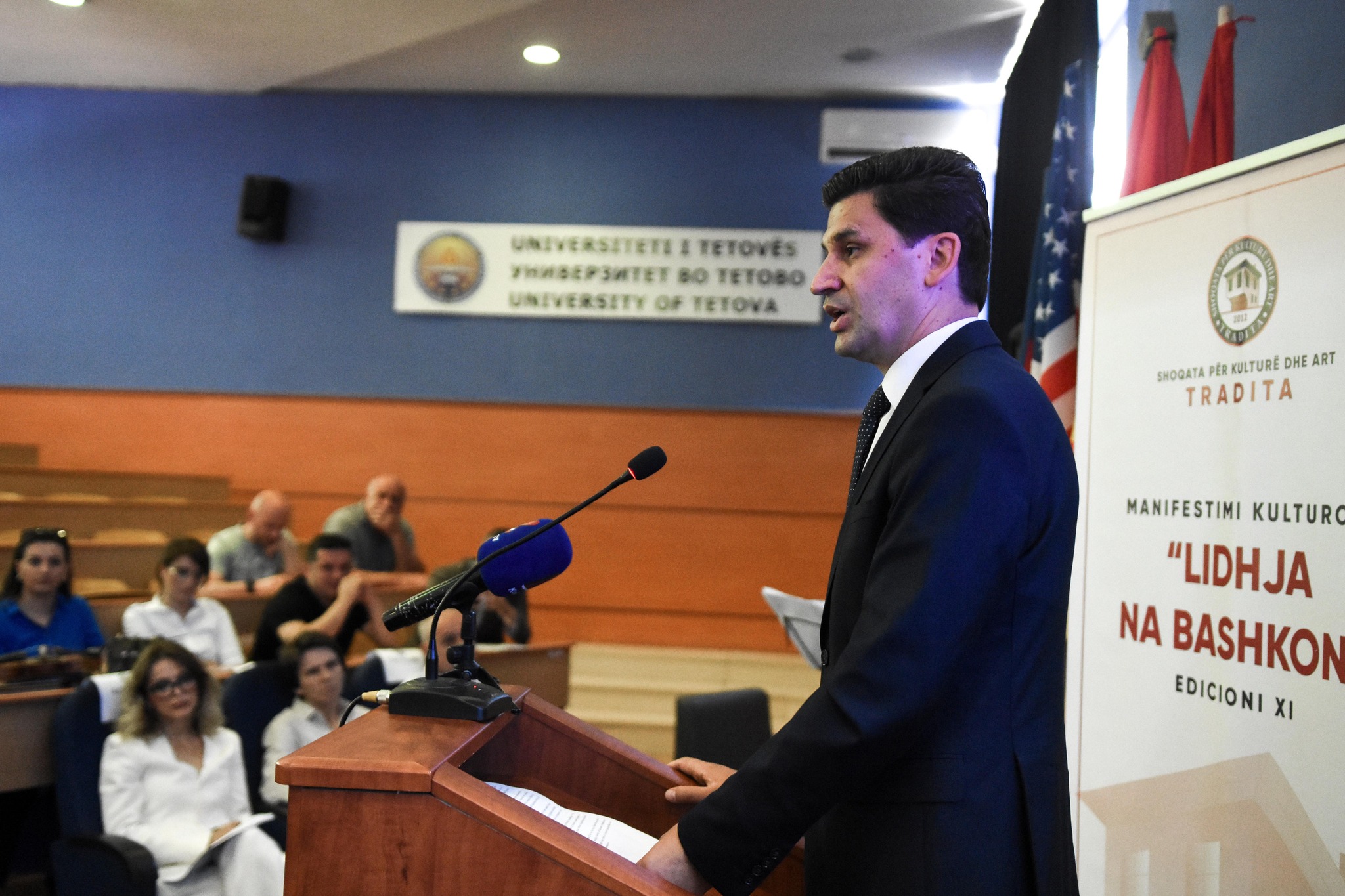 Në fjalën e tij, ai bëri thirrje që të afirmohet diversiteti kulturor dhe interkomunkimi, duke shtuar se njëherazi duhet të kujdesemi për vlerat që kanë të bëjnë me mbrojtjen e identitetit dhe me mbajtjen gjallë të kujtesës për të kaluarën tonë plot sakrifica.