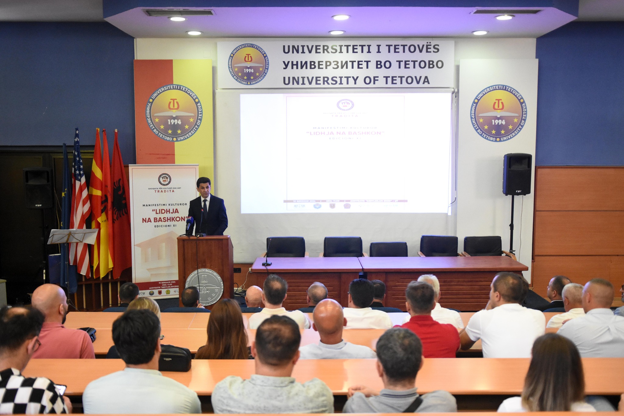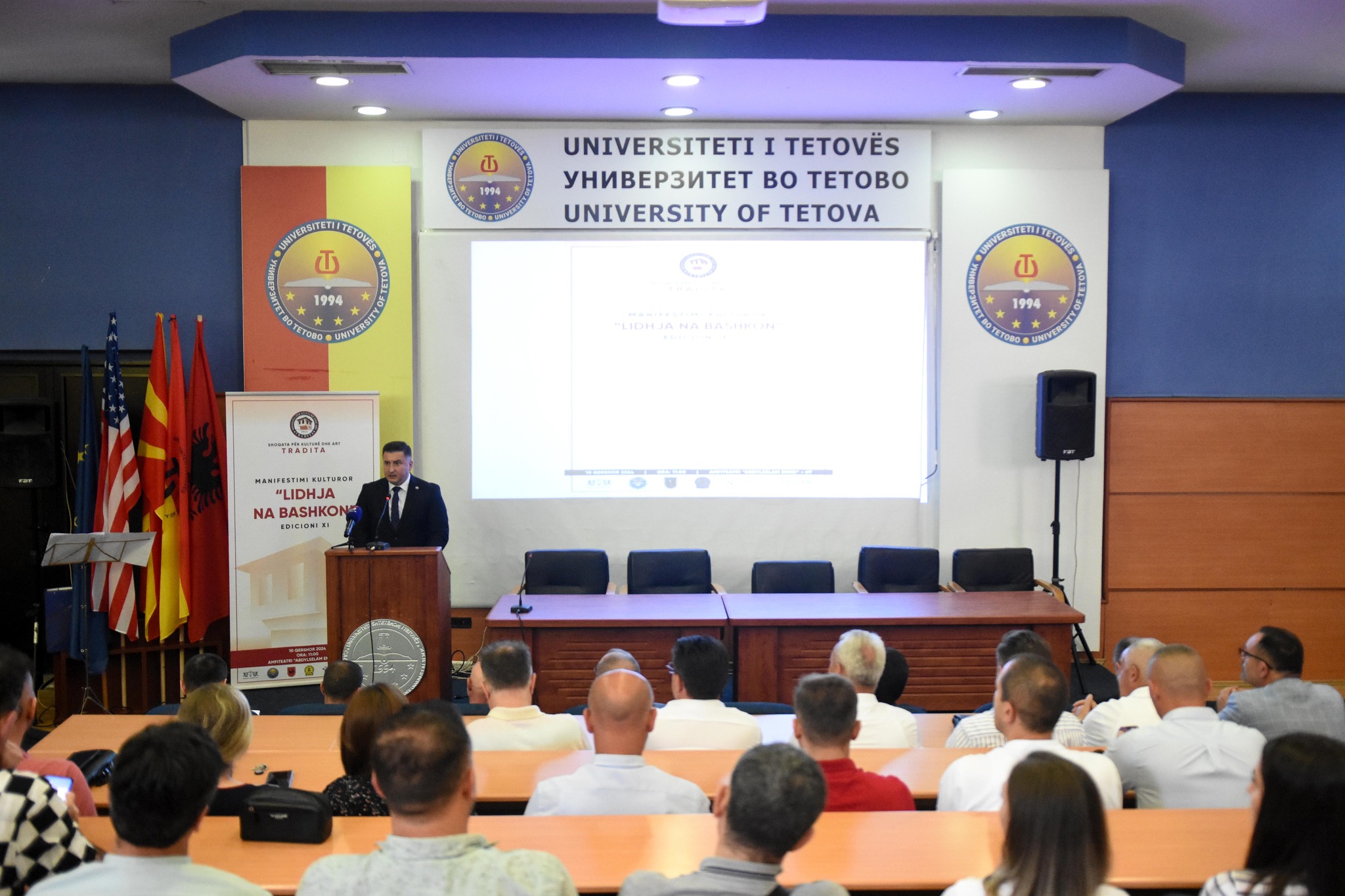 Manifestimin e përshëndeti edhe Rektori i Universitetit të Tetovës, Prof. Dr. Jusuf Zejneli. Ai i përgëzoi organizatorët për këtë veprimtari kulturore që zhvillohet në një datë historike siç është përvjetori i Lidhjes së Prizrenit, duke shtuar se Universiteti është i hapur për bashkëpunim serioz me asociacionet, me shoqatat dhe me organizatat që kanë për qëllim mbajtjen gjallë të jetës kulturore dhe të veprimtarive të tjera më rëndësi publike.