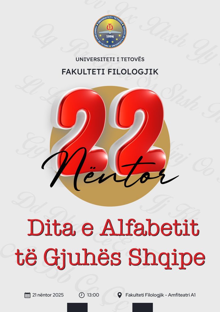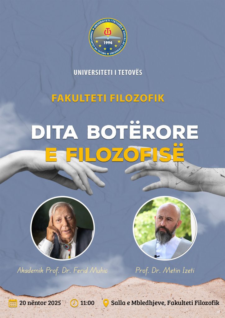 Universiteti i Tetovës, përmes Fakultetit Filozofik dhe Fakultetit Filologjik, do të organizojë ngjarje të rëndësishme kulturore dhe akademike në kuadër të aktiviteteve të muajit nëntor. Më 20 nëntor 2025, Fakulteti Filozofik do të shënojë Ditën Botërore të Filozofisë, ngjarje që synon të thellojë debatin mbi mendimin filozofik dhe rolin e filozofisë në shoqërinë moderne.