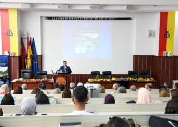 Rektori i Universitetit të Tetovës, Prof. Dr. Jusuf Zejneli, i shoqëruar nga kryetari i Sindikatës së punonjësve, Prof. Dr. Shefket...